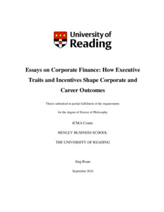 Ruan, J. (2025) Essays on corporate finance: how executive traits and incentives shape corporate and career outcomes. PhD thesis, University of Reading. doi: 10.48683/1926.00122847