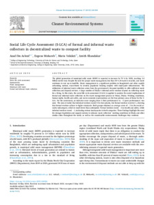 Social Life Cycle Assessment (S-LCA) of formal and informal waste collectors in decentralized waste to compost facility.