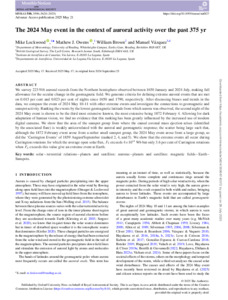 Lockwood, M. ORCID: https://orcid.org/0000-0002-7397-2172, Owens, M. J. ORCID: https://orcid.org/0000-0003-2061-2453, Brown, W. and Vázquez, M. (2025) The May 2024 event in the context of auroral activity over the past 375 yr. Monthly Notices of the Royal Astronomical Society, 540 (4). pp. 3596-3624. ISSN 1365-2966 doi: 10.1093/mnras/staf827