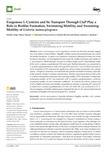 Exogenous L-Cysteine and its transport through ctaP play a role in biofilm formation, swimming motility, and swarming motility of Listeria monocytogenes.