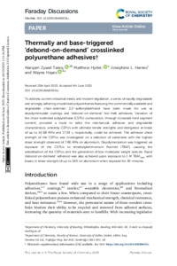 Tareq, A. Z., Hyder, M., Harries, J. L. ORCID: https://orcid.org/0000-0003-0047-2991 and Hayes, W. ORCID: https://orcid.org/0000-0003-0047-2991 (2025) Thermally and base-triggered ‘debond-on-demand’ crosslinked polyurethane adhesives. Faraday Discussions. ISSN 1364-5498 doi: 10.1039/D5FD00051C
