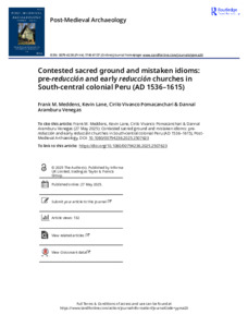 Meddens, F. M., Lane, K., Vivanco Pomacanchari, C. and Aramburu Venegas, D. (2025) Contested sacred ground and mistaken idioms: pre -reducción and early reducción churches in South-central colonial Peru (AD 1536–1615). Post-Medieval Archaeology, 59 (1). pp. 24-67. ISSN 0079-4236 doi: 10.1080/00794236.2025.2507623