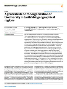Bernardo-Madrid, R. ORCID: https://orcid.org/0000-0003-2026-5690, González-Suárez, M. ORCID: https://orcid.org/0000-0001-5069-8900, Rosvall, M. ORCID: https://orcid.org/0000-0002-7181-9940, Rueda, M. ORCID: https://orcid.org/0000-0002-9754-6258, Revilla, E. ORCID: https://orcid.org/0000-0001-5534-5581, Carrete, M. ORCID: https://orcid.org/0000-0002-0491-2950, Tella, J. L., Astigarraga, J. ORCID: https://orcid.org/0000-0001-9520-3713 and Calatayud, J. ORCID: https://orcid.org/0000-0001-9056-4149 (2025) A general rule on the organization of biodiversity in Earth’s biogeographical regions. Nature Ecology & Evolution, 9. pp. 1193-1204. ISSN 2397-334X doi: 10.1038/s41559-025-02724-5