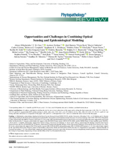 Mikaberidze, A., Cruz, C. D., Zerihun, A., Barreto, A., Beck, P., Calderón, R., Camino, C., Campbell, R. E., Delalieux, S. K. L., Fabre, F., Falla, E., Fraser, S., Gold, K. M., Gongora-Canul, C., Hamelin, F., Harteveld, D. O. C., Hong, C.-F., Leclerc, M., Lee, D.-Y., Lobo Jr., M., Mahlein, A.-K., McLay, E., Melloy, P., Parnell, S., Rascher, U., Rich, J., Salotti, I., Soubeyrand, S., Sprague, S., Surano, A., Takooree, S. D., Taylor, T. H., Touzeau, S., Zarco-Tejada, P. J. and Cunniffe, N. J. (2025) Opportunities and challenges in combining optical sensing and epidemiological modelling. Phytopathology®, 115 (10). ISSN 1943-7684 doi: 10.1094/phyto-11-24-0359-fi