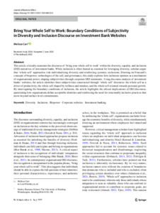 Bring your whole self to work: boundary conditions of subjectivity in diversity and inclusion discourse on investment bank websites.