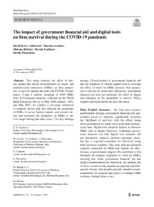 Audretsch, D. B., Aronica, M., Belitski, M., Caddemi, D. and Piacentino, D. (2025) The impact of government financial aid and digital tools on firm survival during the COVID-19 pandemic. Small Business Economics, 65. pp. 813-836. ISSN 0921-898X doi: 10.1007/s11187-025-01014-5