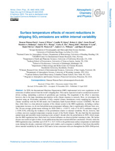Surface temperature effects of recent reductions in shipping SO2 emissions are within internal variability.
