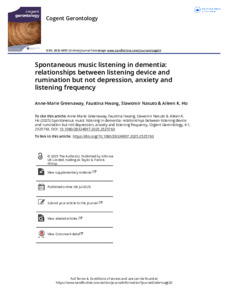 Spontaneous music listening in dementia: relationships between listening device and rumination but not depression, anxiety and listening frequency.