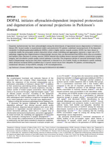 DOPAL initiates αSynuclein-dependent impaired proteostasis and degeneration of neuronal projections in Parkinson’s disease.