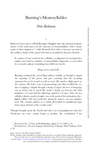 Robinson, P. ORCID: https://orcid.org/0000-0002-7903-5438 (2025) Bunting's Monosyllables. The Cambridge Quarterly, 54 (2). pp. 119-136. ISSN 1471-6836 doi: 10.1093/camqtly/bfaf017