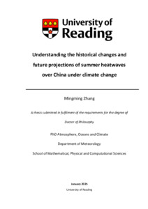 Zhang, M. (2025) Understanding the historical changes and future projections of summer heatwaves over China under climate change. PhD thesis, University of Reading. doi: 10.48683/1926.00123658
