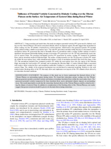 Influence of potential vorticity generated by diabatic cooling over the Tibetan Plateau on the surface air temperature of Eastern China during Boreal Winter.