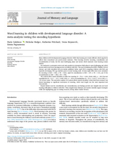 Word learning in children with developmental language disorder: a meta-analysis testing the encoding hypothesis.