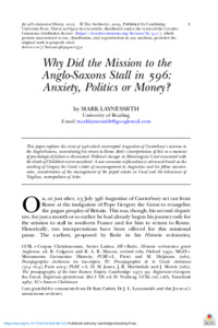 Laynesmith, M. (2025) Why did the mission to the Anglo-Saxons stall in 596: anxiety, politics or money? The Journal of Ecclesiastical History, 76 (3). pp. 513-535. ISSN 1469-7637 doi: 10.1017/S0022046924001532