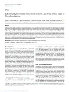 Subclinically depressed individuals showed less trust after a night of sleep deprivation.