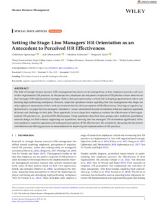 Setting the stage: line managers' HR orientation as an antecedent to perceived HR effectiveness.