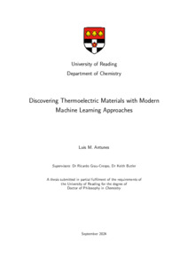 Antunes, L. M. (2024) Discovering thermoelectric materials with modern machine learning approaches. PhD thesis, University of Reading. doi: 10.48683/1926.00123851