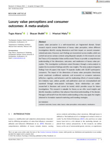 Akarsu, T., Shaikh, S. and Maity, M. (2025) Luxury value perceptions and consumer outcomes: a meta‐analysis. Psychology & Marketing, 42 (1). pp. 193-213. ISSN 1520-6793 doi: 10.1002/mar.22120