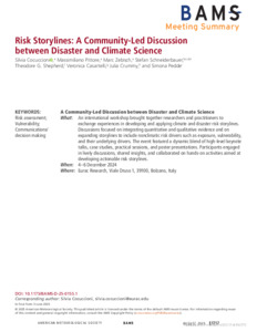 Cocuccioni, S., Pittore, M., Zebisch, M., Schneiderbauer, S., Shepherd, T. G. ORCID: https://orcid.org/0000-0002-6631-9968, Casartelli, V., Crummy, J. and Pedde, S. (2025) Risk storylines: a community-led discussion between disaster and climate science. Bulletin of the American Meteorological Society, 106 (8). E1717-E1723. ISSN 1520-0477 doi: 10.1175/BAMS-D-25-0155.1