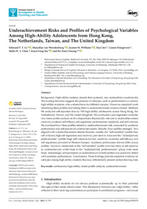 Underachievement risks and profiles of psychological variables among high-ability adolescents from Hong Kong, the Netherlands, Taiwan, and the United Kingdom.