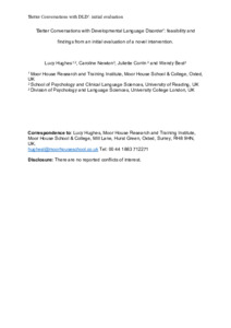 Hughes, L. ORCID: https://orcid.org/0000-0003-0790-0012, Newton, C., Corrin, J. and Best, W. (2025) “Better conversations with developmental language disorder”: feasibility and findings from an initial evaluation of a novel intervention. American Journal of Speech-Language Pathology, 34 (5). pp. 2586-2617. ISSN 1558-9110 doi: 10.1044/2025_ajslp-24-00448