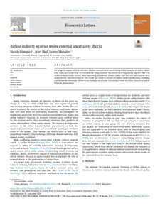Blampied, N. and Mahadeo, S. M. R. ORCID: https://orcid.org/0000-0001-8576-5755 (2024) Airline industry equities under external uncertainty shocks. Economics Letters, 244. 111994. ISSN 1873-7374 doi: 10.1016/j.econlet.2024.111994