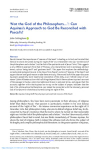 ‘Not the God of the philosophers…’: can Aquinas’s approach to God be reconciled with Pascal’s?