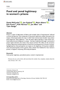 McCarthy, D., Garland, J., Adams, M., Power, E., Harman, V. ORCID: https://orcid.org/0000-0001-7296-7235, Allen, J. and Dadge, T. (2025) Food and penal legitimacy in women’s prisons. European Journal of Criminology. ISSN 1741-2609 doi: 10.1177/14773708251365398