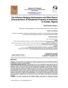 The inflation-hedging performance and risk-return characteristics of residential property investments in Gombe, Nigeria.