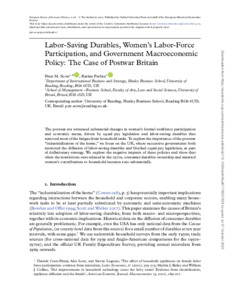 Labor-saving durables, women’s labor-force participation, and government macroeconomic policy: the case of postwar Britain.