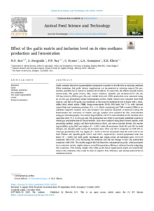 Effect of the garlic matrix and inclusion level on in vitro methane production and fermentation.