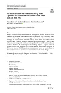 Financial development, political instability, trade openness and growth in Brazil: evidence from a new dataset, 1890-2003.