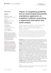 Sadeq, A. A., Alhaj Ali, L. Z., Shamseddine, J. M., Conway, B. R., Bond, S. E., Ali, R., Lattyak, W. J., Eltahir Babiker, Z. O. and Al Deyab, M. A. (2025) Impact of integrating guidelines into an antimicrobial stewardship smartphone application on outpatient antibiotic prescribing: a segmented interrupted time series analysis. Frontiers in Digital Health, 7. ISSN 2673-253X doi: 10.3389/fdgth.2025.1647528