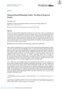 The drive for greater public engagement and the turn to social science: each is an important and welcome movement in contemporary political philosophy. However, the relationship between these two boundary-crossing endeavours is not simple or obvious. I suggest that political philosophers have sometimes been too quick to assume that empirically-sensitivity and publicness go together; and I identify some ways in which these features can diverge and even compete. More positively, I go on to outline a modestly public role for political philosophy that is facilitated by in-depth engagement with diverse forms of social scientific evidence.