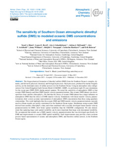 Bhatti, Y. A., Revell, L. E., Schuddeboom, A. J., McDonald, A. J., Archibald, A. T., Williams, J. ORCID: https://orcid.org/0000-0002-0680-0098, Venugopal, A. U., Hardacre, C. and Behrens, E. (2023) The sensitivity of Southern Ocean atmospheric dimethyl sulfide (DMS) to modeled oceanic DMS concentrations and emissions. Atmospheric Chemistry and Physics, 23 (24). pp. 15181-15196. ISSN 1680-7324 doi: 10.5194/acp-23-15181-2023
