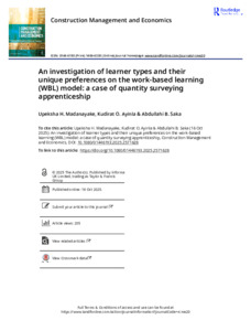 An investigation of learner types and their unique preferences on the work-based learning (WBL) model: a case of quantity surveying apprenticeship.