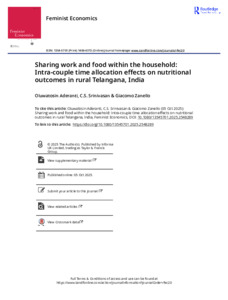 Sharing work and food within the household: intra-couple time allocation effects on nutritional outcomes in rural Telangana, India.
