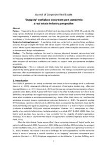Uncontrolled Keywords Employee engagement, Corporate real estate, COVID-19 pandemic, Workplace environment, Hybrid workplace, Knowledge-intensive work