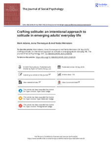 Crafting solitude: an intentional approach to solitude in emerging adults’ everyday life.