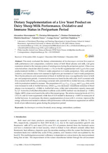 Dietary supplementation of a live yeast product on dairy sheep milk performance, oxidative and immune status in peripartum period.