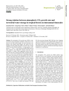 Petch, S., Feng, L., Palmer, P., King, R. P., Quaife, T. ORCID: https://orcid.org/0000-0001-6896-4613 and Haines, K. ORCID: https://orcid.org/0000-0003-2768-2374 (2025) Strong relation between atmospheric CO2 growth rate and terrestrial water storage in tropical forests on interannual timescales. Biogeosciences, 22 (22). pp. 7031-7051. ISSN 1726-4189 doi: 10.5194/bg-22-7031-2025