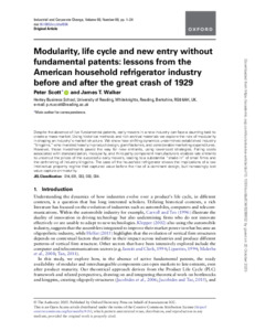 Modularity, life cycle and new entry without fundamental patents: lessons from the American household refrigerator industry before and after the great crash of 1929.