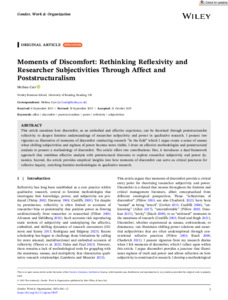 Moments of discomfort: rethinking reflexivity and researcher subjectivities through affect and poststructuralism.