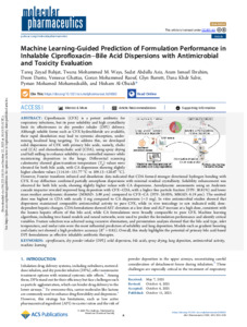 Machine learning-guided prediction of formulation performance in inhalable ciprofloxacin–bile acid dispersions with antimicrobial and toxicity evaluation.
