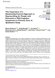 The importance of a relationship-centred approach to deprescribing for people with dementia or mild cognitive impairment in primary care: a qualitative study.
