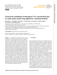 Beylat, S. ORCID: https://orcid.org/0009-0006-6315-4527, Raoult, N. ORCID: https://orcid.org/0000-0003-2907-9456, Bacour, C. ORCID: https://orcid.org/0000-0002-1913-3722, Douglas, N. ORCID: https://orcid.org/0000-0002-3404-8761, Quaife, T. ORCID: https://orcid.org/0000-0001-6896-4613, Bastrikov, V., Rayner, P. J. and Peylin, P. (2025) Towards the assimilation of atmospheric CO2 concentration data in a land surface model using adjoint-free variational methods. Geoscientific Model Development, 18 (20). pp. 7501-7527. ISSN 1991-9603 doi: 10.5194/gmd-18-7501-2025