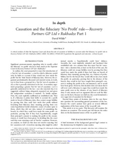 Wilde, D. (2025) Causation and the fiduciary ‘No Profit’ rule— Recovery Partners GP Ltd v Rukhadze Part 1. Trusts & Trustees, 31 (9). pp. 476-485. ISSN 1363-1780 doi: 10.1093/tandt/ttaf069