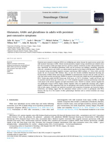 Glutamate, GABA and glutathione in adults with persistent post-concussive symptoms.