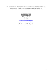 Lockwood, M. (2006) Changing Standards? Children's awareness and knowledge of features of written standard English at ages 10-11. Changing English, 13 (1). pp. 17-28. ISSN 1358-684X doi: 10.1080/13586840500523455