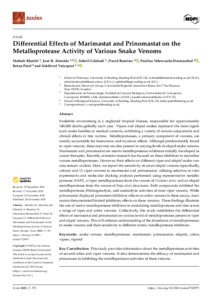 Differential effects of marimastat and prinomastat on the metalloprotease activity of various snake venoms